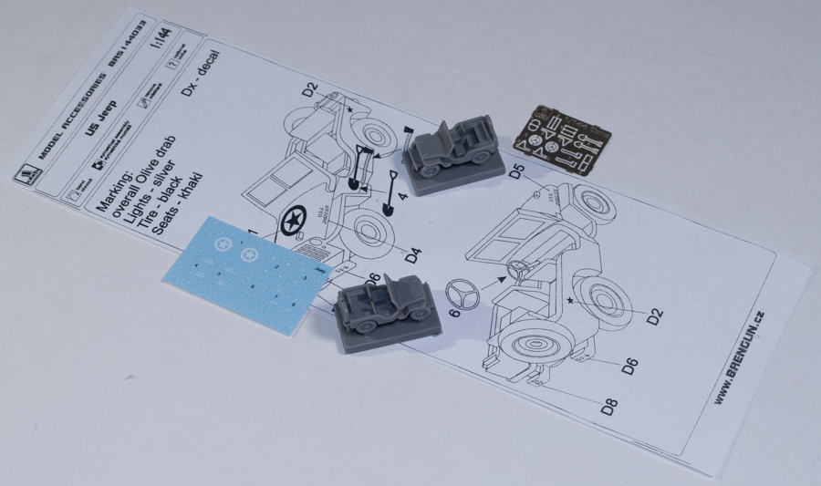 Brengun also supplies a decal sheet with US "stars" and various recognition markings for the Jeeps. These look to be in register and are nicely printed.