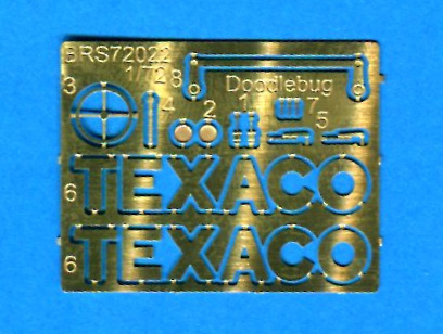 The PE fret includes headlight rims, windshield wipers, mirrors and Texaco letters that attach to raised mounts cast onto the body. The Doodlebug had simple livery of overall red with white Texaco logos. The small decal sheet is well printed and in-register. It includes 2 options which are simply logos for the rear sides of the body. There is also a pair of Texaco logos, one each for the truck's front and rear.