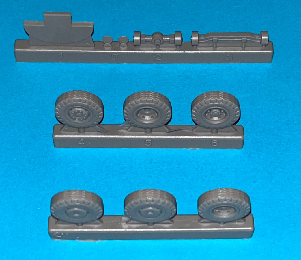 The kit is simple, well engineered and it will be easy to build. The interior is a separate molding with a PE steering wheel and shift lever. The body and chassis are separate castings. The 6 wheels attach to axles, which are first glued to the underside of the chassis. The resin quality is first class. The parts are attached to well located casting blocks and will be easily removed from them. The wheels and tires are finely detailed and will look great with an oil wash. The body has subtle, well executed details, such as the head and tail lights, the cast-on Texaco logos and body storage compartments. I recommend drilling out the cast-in headlights and adding a pair of MV lenses, which you can find through model railroad aftermarket sources.