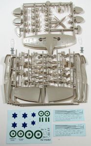 Whichever sub-type of the Mk.IX you purchase from AZ Model - the Mk.IXc or Mk.IXe - you'll receive the same exact parts in the box. The differences lie in the instructions and the decals, if they're provided. I cover three boxings of the Mk.IX from AZ Model, the Mk.IXc "2 in 1", "IDF/AF" & "REAF"; Mk.IXe "IDF/AF"; and the Mk.IXc "Joy Pack" with three complete kits, but no decals. Since the plastic is the same, I'll mention the markings provided: