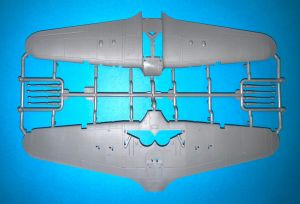 The cockpit is a multi piece assembly and it will look great with an oil wash and dry brushing of the raised detail. I'm especially impressed that you assemble the cockpit parts on the upper wing, much like the real plane. The radiator is equally well detailed. You also get 2 different tail wheels and spinners to choose from. The control surfaces are separately molded and the fabric rudder looks great.. Underwing stores include drop tanks, bombs and racks.