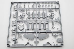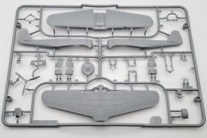 Starting with the cockpit, this includes the cockpit floor molded into the upper wing half, sidewall detail molded into the fuselage halves, and a ton of extra separate details. These include boxes & throttle bits for the sidewalls, four pieces for the floor, including rudder pedals and control stick, a rear frame that has a separate seat pan, and an instrument panel with two styles of gunsight options. The majority of the cockpit is attached to the wing, which allows you to assemble the fuselage before adding in the cockpit.