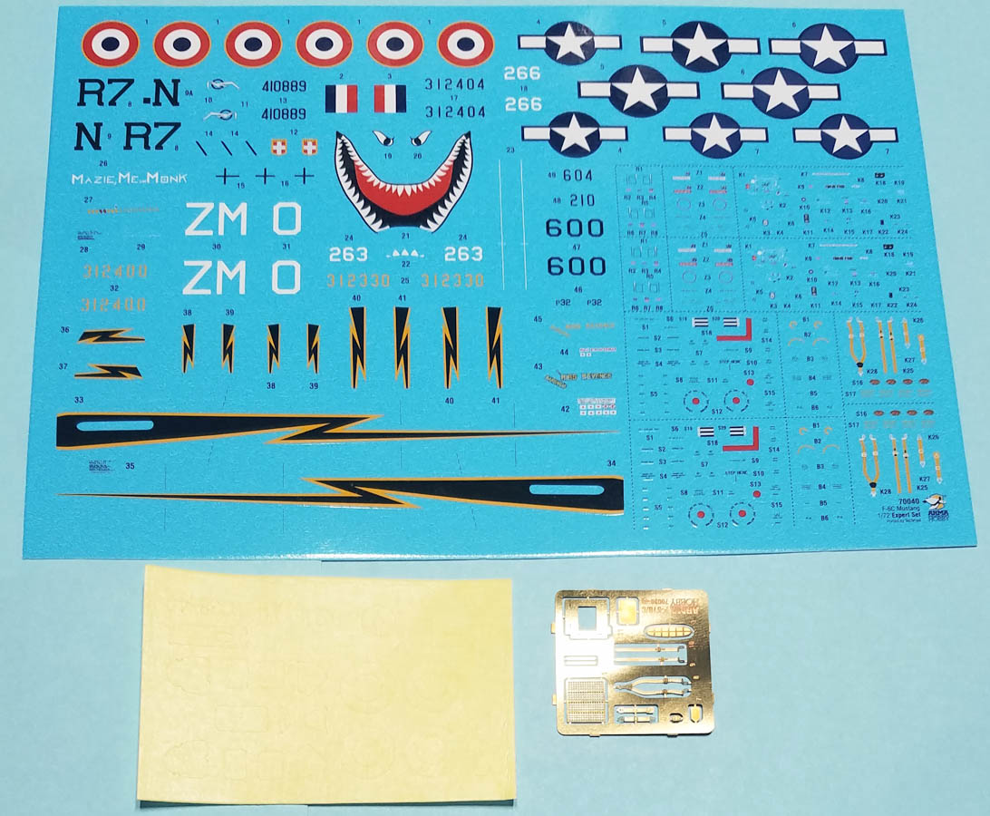 The decals are nicely printed and offer all stencling that was provided for in the first release. Note that Arma has replaced the vinyl masks in the original release with ones made from the beloved "yellow tape". Also be aware that Arma has created the template to create the extra panel specific for the F-6C on the photoetch fret.