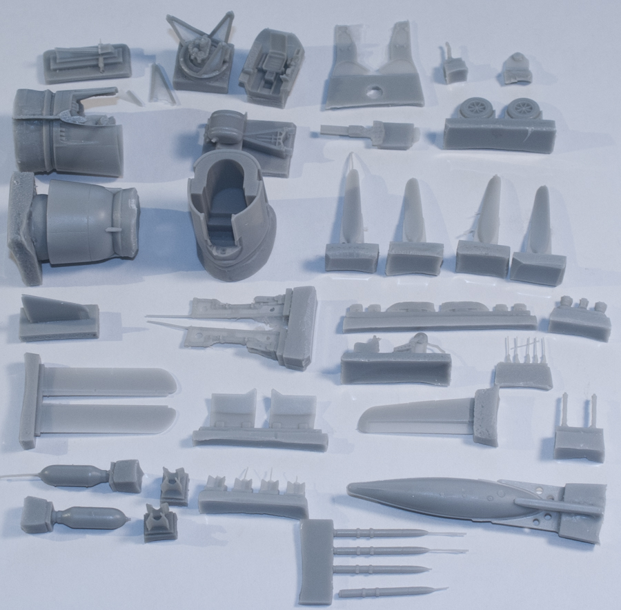The final pieces for the aircraft are the windscreen and canopy, rockets, bombs and external fuel tank. Definitely track down the aircraft you want to model to be sure what external stores are needed.![]()