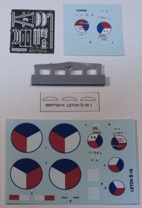 The Brengun 1/72 Š-16.1 consists of 83 pieces of tan, injected plastic (some parts not used for this version), a photoetch fret with 18 pieces, a resin propeller for the record-setting aircraft and a piece of clear film for the windscreens. Decals are for two aircraft, the famous Š-16.1 that was flown from Prague to Tokyo, and the first production Š-16.1 that was used as a promotional aircraft and used the rudder from the Prague-to-Tokyo aircraft. The decals appear to be in register and are nicely printed. Both machines are finished in overall green on the upper surfaces with aluminum on the undersides.