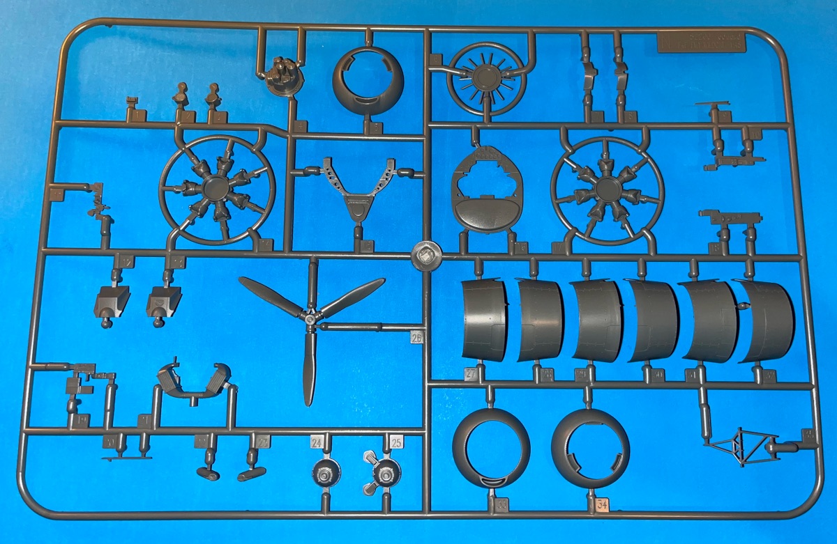 The 14 cylinder 1,000 horsepower Pratt & Whitney R-1830-66 Twin Wasp radial engine is assembled from 4 well detailed parts which will look great with an oil wash and careful dry brushing. The engine attaches to the fuselage front and in turn is enclosed in a 3 piece cowling. The kit includes marking options for 6 different F4F-4 Wildcat aircraft: