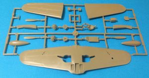 The kit consists of 133 parts. 104 of these are injection-molded in 2 colors on 3 sprues, plus 6 clear parts. 25 parts are destined for the spares box. There are 29 photo-etched parts. Approximately half of these are prepainted on a single fret. It includes a seat harness, instrument panel, the rear portion of the machine guns and their cocking mechanisms, oleo scissors, etc. You also get a set of canopy and wheel masks, under wing bombs and racks, plus a drop tank. The instrument panel faces are blank. The instrument dials are on the decal sheet and for best results you can punch these out and apply them individually, if you don't want to use the photo-etched parts. I am not an expert on the P-39 but I think that out of the box you can probably build either a P-39 or P-400, based on the number of extra parts.![]()