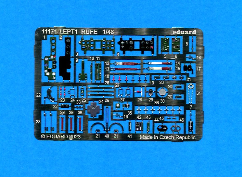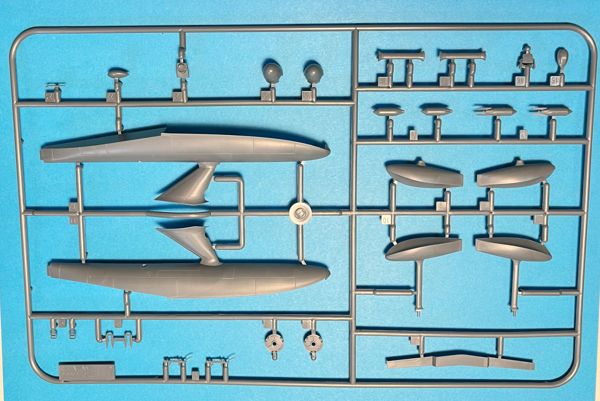 This is the Dual Edition of Eduard's Rufe kit. You get 2 complete kits, 2 photo-etch frets and rice paper masks for the windscreen, canopy and the beaching trolley wheels. Each kit consists of 231 parts. 185 of these are injection molded parts on 6 sprues. The PE sprue includes 46 pieces, many of them pre-painted.