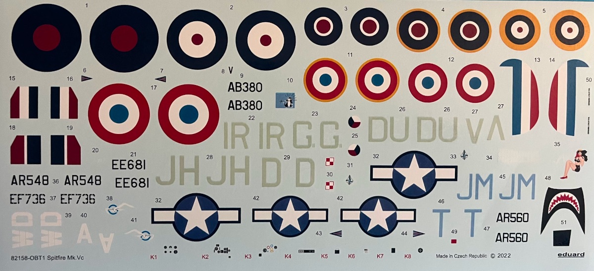 The kit includes marking options for 7 different Mk.Vc aircraft: