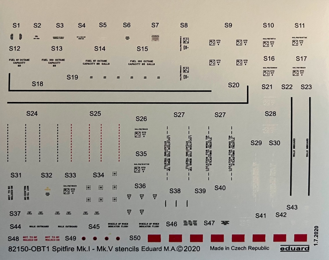 There are 2 decal sheets, one for the the 7 decal options and one for the airframe stencils. The instructions are well illustrated with a logical assembly sequence. Color callouts are for GSI Creos (Gunze) Aqeous and Mr. Color and Mission Models paints. This is a first class product!