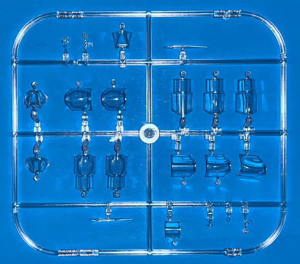 The cockpit is a major focal point of this kit. It is a complex assembly and you can use the instrument panel decal or opt for the PE "sandwich". You can choose from 2 different gunsight lenses, rectangular or oval. The PE fret also includes the seat harness, rudder pedal straps, throttle quadrant, etc.