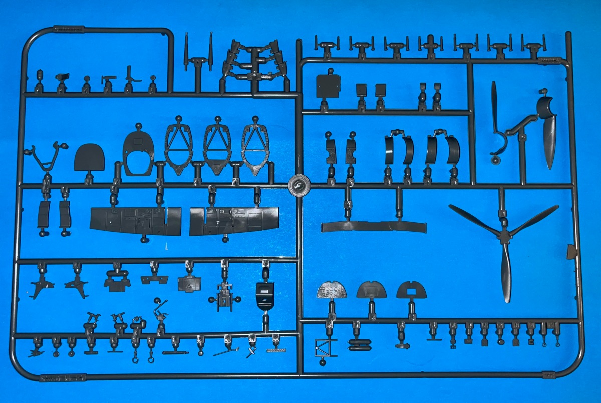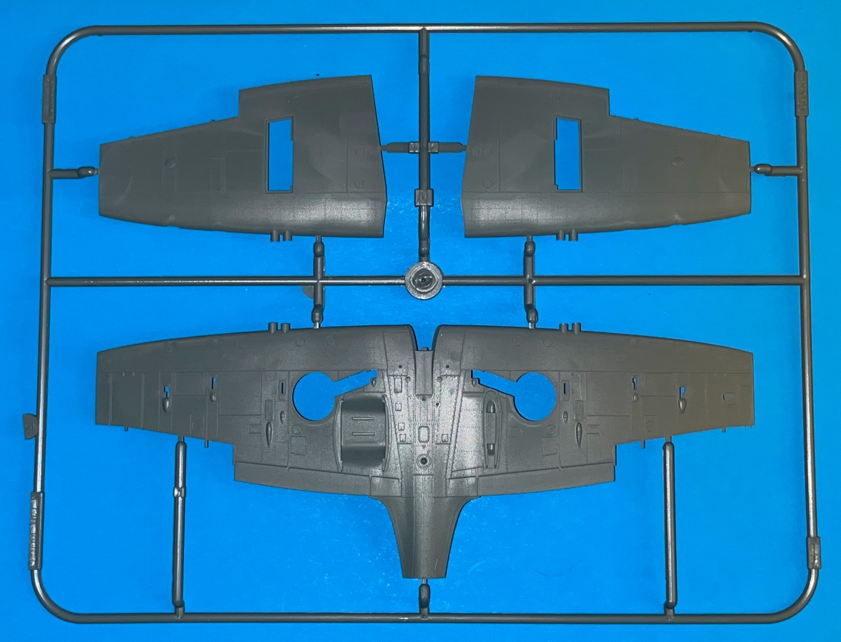You get 266 parts in the box. 228 of them are plastic on 7 sprues. There are 37 parts on a single photo-etch fret, plus a small sheet of rice paper masks. The surface detail of the wings and fuselage consists of delicate recessed panel lines and rivets along with raised elements like Dzus fasteners on the cowling. This detail is superbly executed and will look stunning with thinly applied paint and panel line washes.