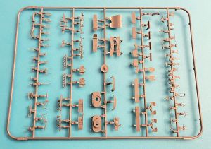 The cockpit is a multi piece assembly and it will look great with an oil wash and dry brushing of the raised detail. The radiator is another well detailed and complex assembly and you have 2 different dust filters to choose from. The wheel wells are also multi piece, have great detail and the Dowty levered undercarriage has been faithfully captured.
