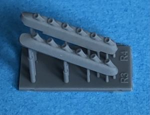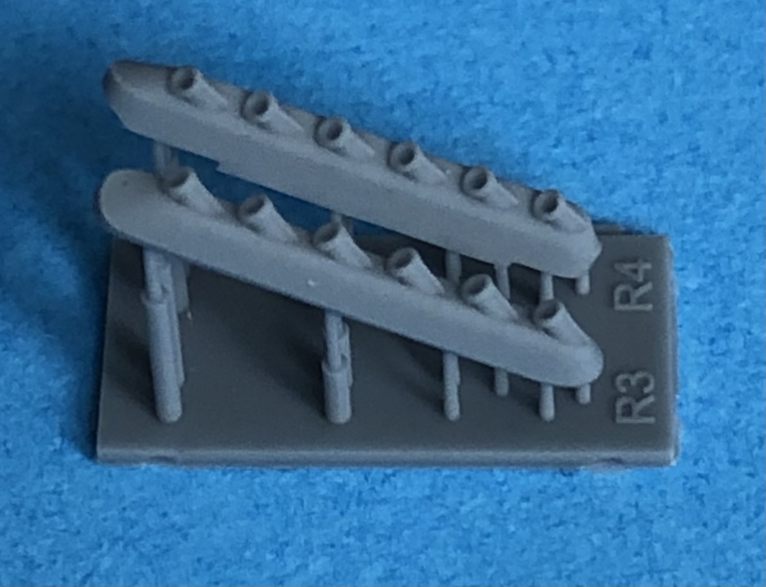 This simple set is a pair of 3-D printed resin exhausts with fairings. Their detail is superb, plus the stacks openings are drilled. These look great.