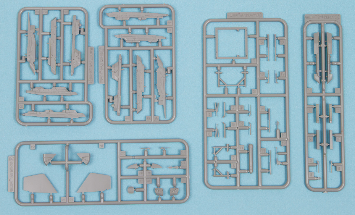 Before jumping into what all the kit comes with, a word needs to be said about the packaging of this kit. This kit comes with some of the most protective packaging I've seen in quite some time. The main upper fuselage piece has its own box, to protect all its various edges from damage. The various sprues are carefully bagged in resealable plastic bags. The clear parts are in a resealable bag, with a separate adhesive pad on the main canopy, and all of that is in a foam bag. Finally, the weapons, which are exquisitely molded, are carefully protected in a two-piece molded shell. Some might think this is overkill, but given the amount of work put into this kit, I am not surprised that Great Wall Hobby wanted to protect it well.