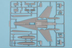 Going to the nose, the nose cone is separate and features a separate pitot tube. There are several other probes and antennae waiting to be added as well. The canopy can be displayed open or closed, and has all the requisite hardware to display it properly. There is no mention of nose weight, so you will want to check to see if your build needs an extra little help to keep it on all three.