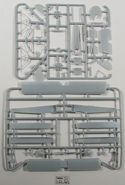 The HR Models 1/72 Hanriot HD.1 consists of 56 pieces in injected gray plastic (not all used as the same trees are for the HD.1 and HD.2), and a small sheet of clear film. The film takes care of the three different types of windscreen along with an instrument panel. The injected pieces are nicely done, with the underside of the wings correctly showing "sunken ribs", as opposed to be "raised", as they were on the upper surfaces. Kudos to HR for that. In addition the HR kit comes with a separate turtledeck, which means you won't have to re-add stringer detail lost in sanding. More companies need to do this when it comes to stringered turtedecks.