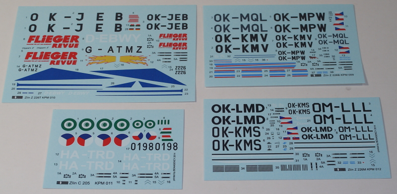 The KP Zlin Trener consists of 47 pieces of tan, injected plastic and one clear canopy as a single piece. Dependent on the box you choose are what decals come with that version. The decals appear to be in register and are nicely printed.