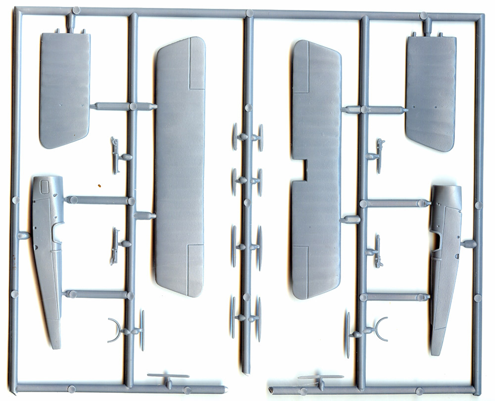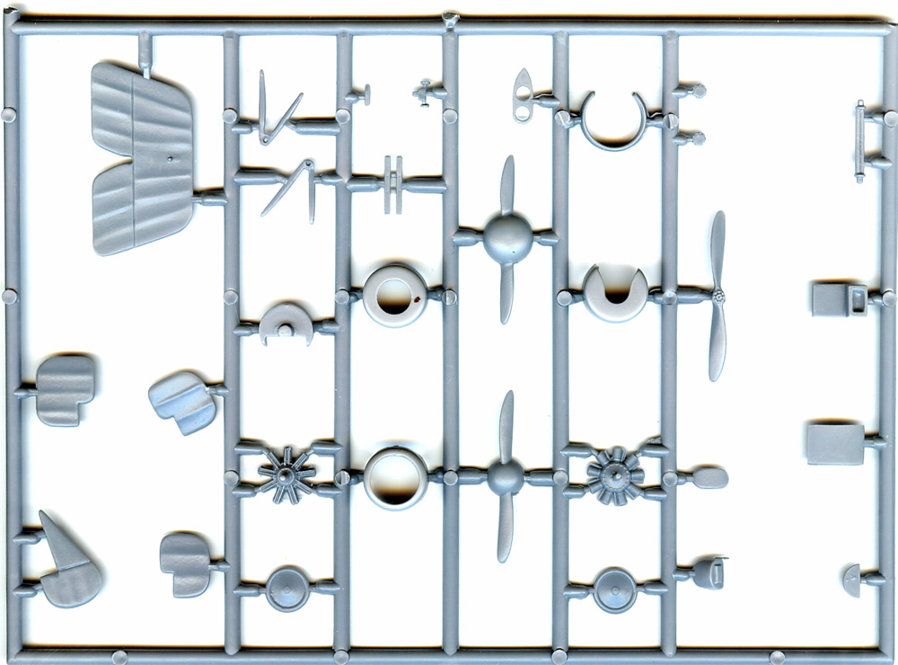 MAC proposes this kit in “two flavors” so it is no surprise that the injected bits, totaling 42 parts, have all that is needed to build both C and D variants, including a choice of engines (Le Rhône 80 hp and 100 hp Gnôme Monosoupape), three types of cowlings, 4 types of rudders , three types of propellers (with and without spinner), two types of top wings, and a choice of Lewis and Vickers machine guns. (I haven’t really given this an in depth examination, but I’d bet that a type B could also be made from all of the parts provided, this entailing mostly reshaping the tailplane and reducing the dihedral on the wings).