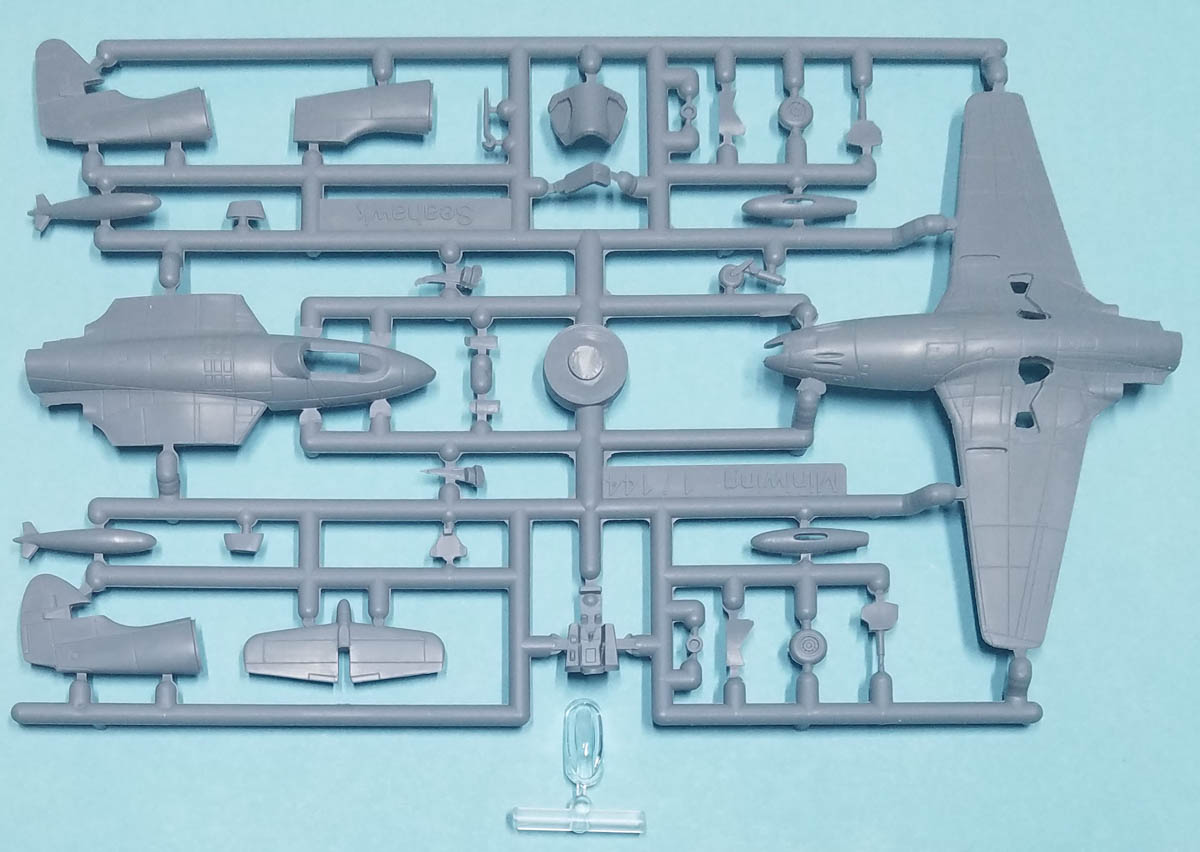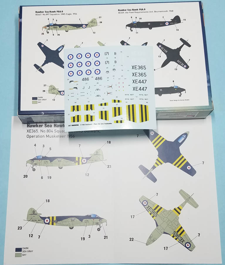 This is an excellent example of the Hawker Sea Hawk in 1/144 and will look great when finished. Be aware that Miniwing has multiple releases of the Sea Hawk: this 2 in 1 boxing; Hawker SEA HAWK FGA.50 / Mk.101 Foreign Operators (2in1); and the Hawker SEA HAWK FGA.6 bagged kit with markings for only one aircraft.