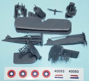 The Out of the Box Models 1/72 Thomas-Morse MB-3 Prototype consists of 14 pieces of gray colored 3D printed resin and decals for one aircraft, the second prototype 40093.