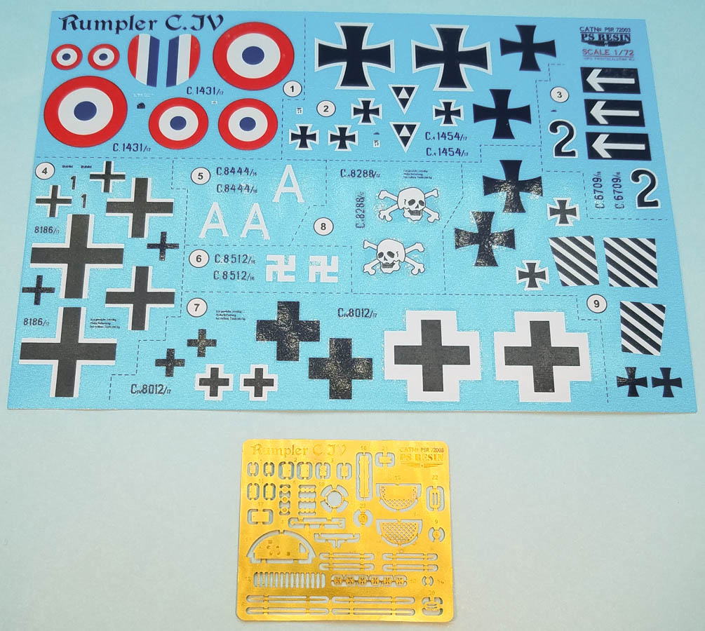 This is Print Scale's first foray into a complete 3D printed kit; in the past (and lately) they have produced 3D printed detail/conversion pieces, but not a full kit until the Rumpler. Their Rumpler C.IV contains a lot of parts. It's difficult to tell, without looking in closer, where the 3D "towers" end and the parts begin, and I don't want to remove parts until I'm closer to starting the model. There are markings for nine Rumpler C.IVs: