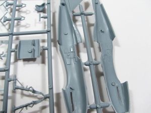 The final instruction steps have you build the landing gear and glue them on but are better left until the final stages of construction. The one item that should go on at this stage, though, is the built-up, underside radiator.