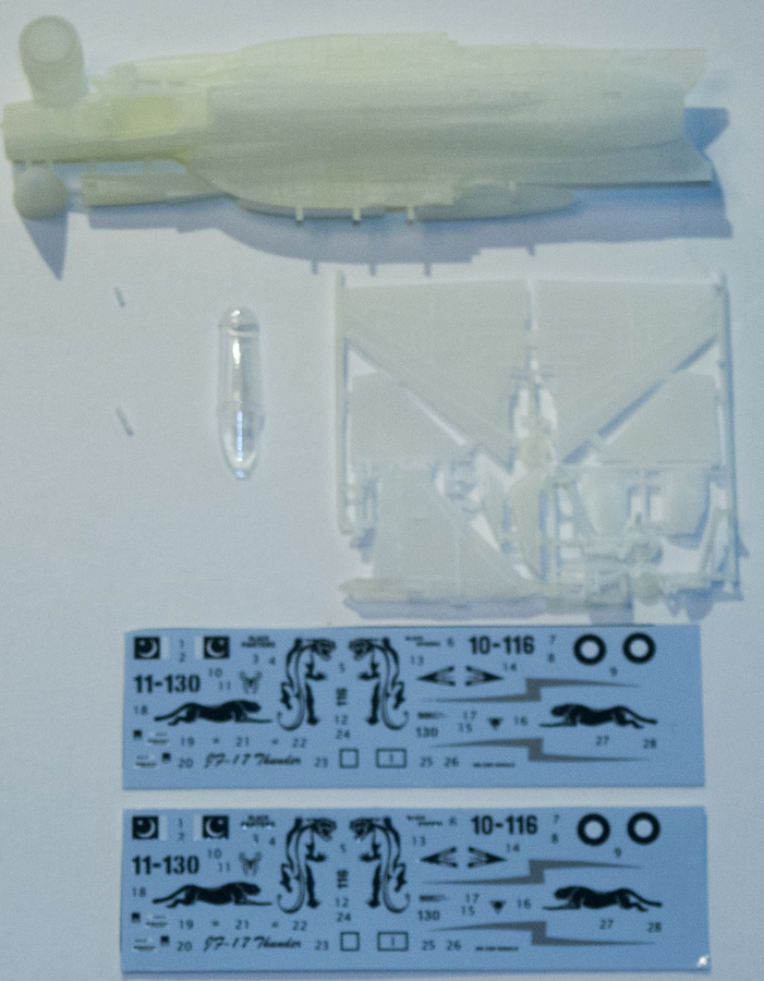 The Triple Nuts 1/144 JF-17 consists of 29 pieces of light-tan, 3-D printed resin and one clear resin canopy. There are decals for two different Pakistani JF-17s and the decals look nice, but I’m unsure if they’re on a contiguous piece of decal so you might need to cut as close to the design as possible, something I do anyway.