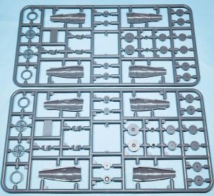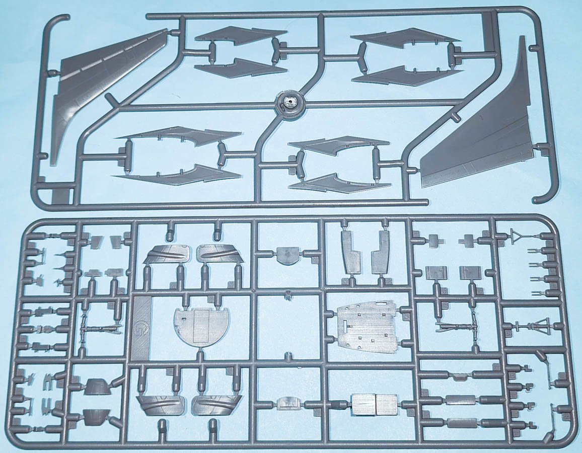 The X-Scale 1/144 EC-24A consists of 165 pieces of green-colored injected plastic along with a clear, plastic injected sprue with the cockpit canopy and two landing lights for the nose landing gear. Also included is a set of masks for the clear canopy, wheels and the nose landing lights. Decals are only for the single EC-24A and appear to be in register and include the fuselage side windows, which are not in injected plastic.