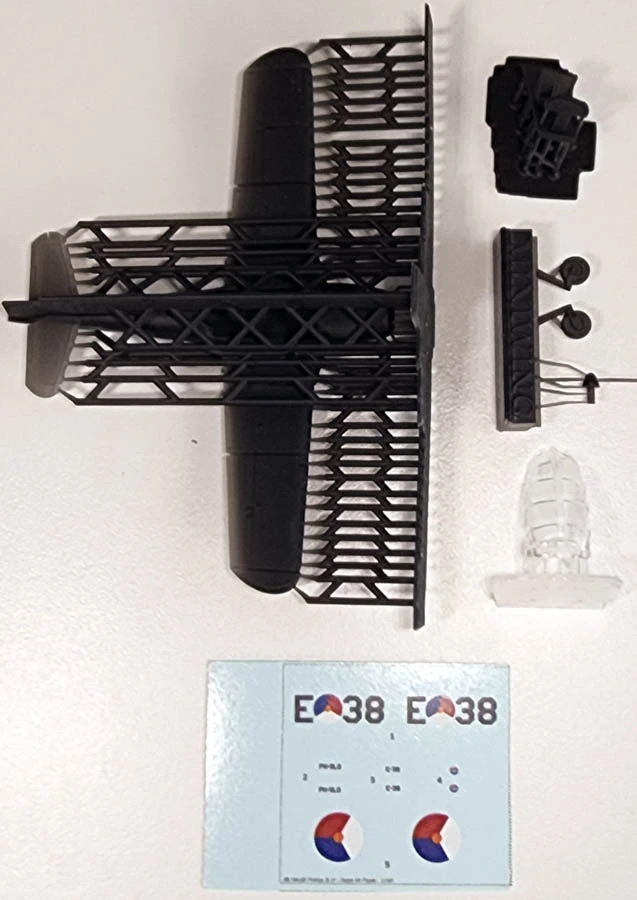 There's one aspect with the kit that the modeler should be aware of: the kit does NOT have any representation of the fabric-covered fuselage sides. Some could argue that it's moot in this scale, but 3D printing should be able to handle it. The flying surfaces on this model are extremely thin so why not have "something" to represent the fabric? Starving-cow ribs need to apply. As it is, I will represent the fabric "ribs" via paint.