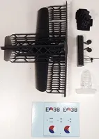 The Miniwing 1/144 Fokker S-11 consists of five pieces of black 3D printed resin and one clear 3D printed canopy. For this release - "mini107" - decals are for only one Dutch S-11, "E.38", finished overall in yellow with red/orange day-glo panels on the fuselage and wings. The decals are printed on a single-piece decal film so each will need to be cut out separately.