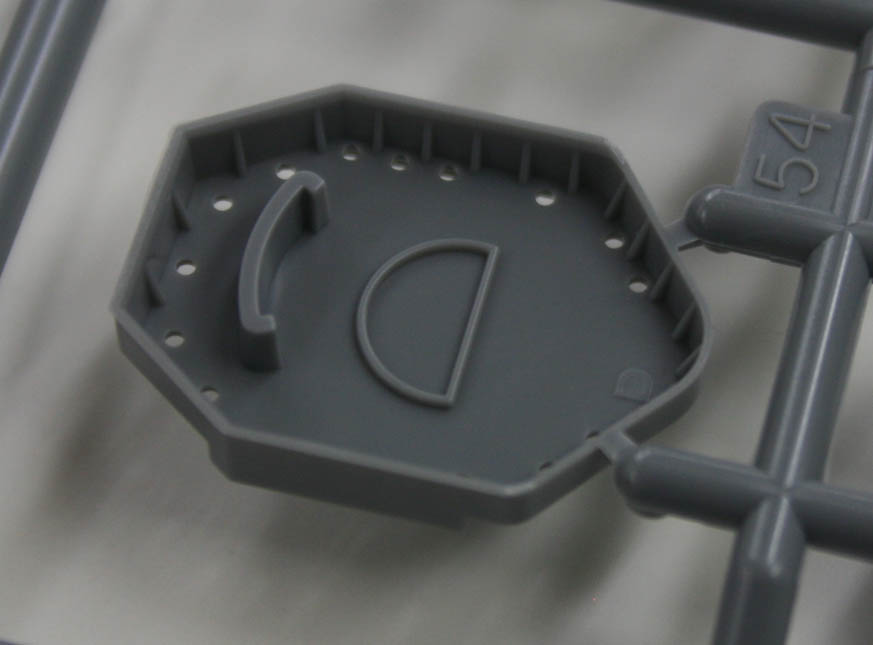 Along with this is a good attempt to provide the option to show interior detail of the top level of the turrets. The platform shelf itseld contains some of the details of the interior, such as the optical rangefinder and shell ramming track, but misses a lot of the finer details that would make this a kit in and amongst itself. Perhaps an aftermarket company will provide a set to allow the builder to go full-goose bozo in this regard.