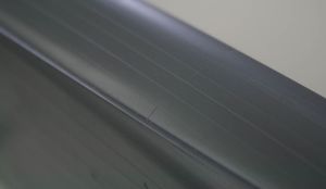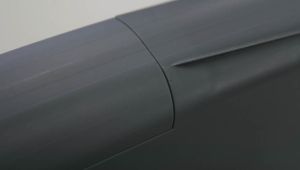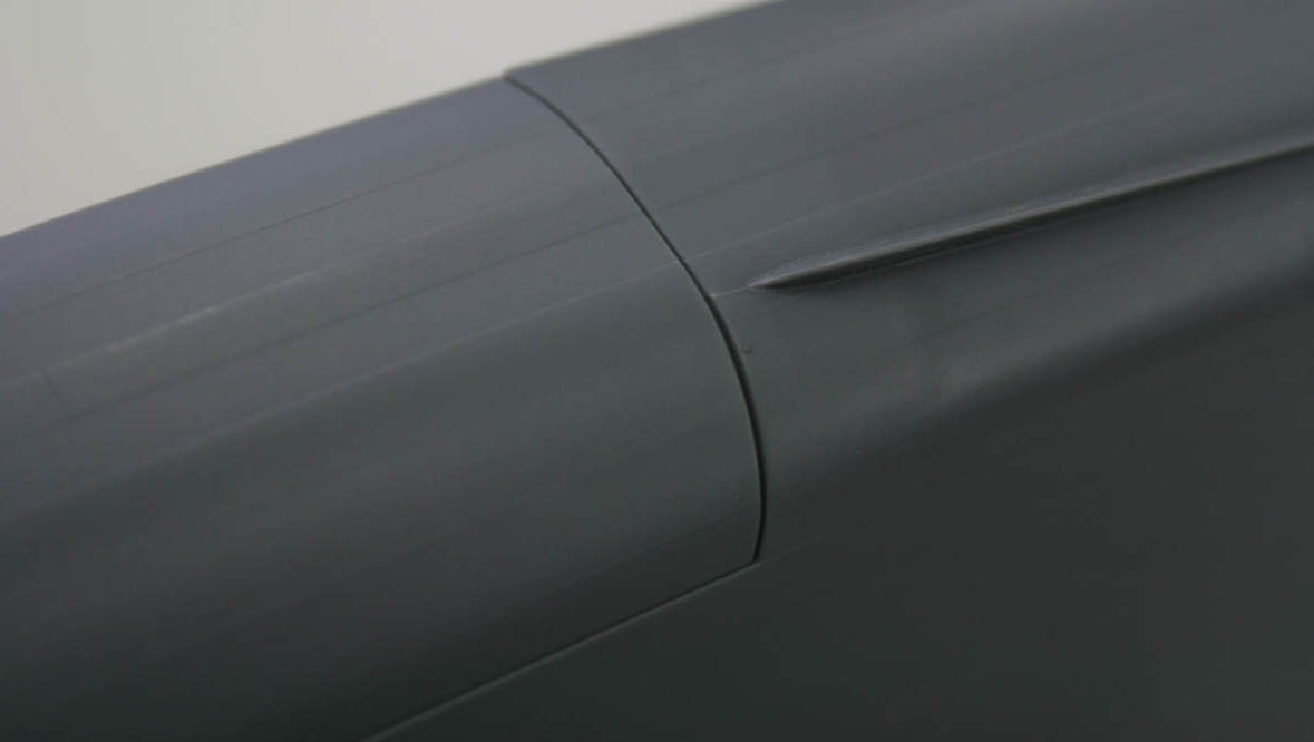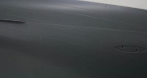 The most noticeable seam, however, is that on the forward hull. In order to mold such a complex hull shape with crisp details over it's form, the hull had to be broken down into many parts. There are two below the waterline and at least three above it. As you can see in the photo to the right, this leaves a seam that should be filled. Perhaps not much concern if the two surfaces are perfectly true to each other, but in this ase I felt a slight step that would require some sanding as well as filling in order to negate, which will destroy the surrounding strake detail.