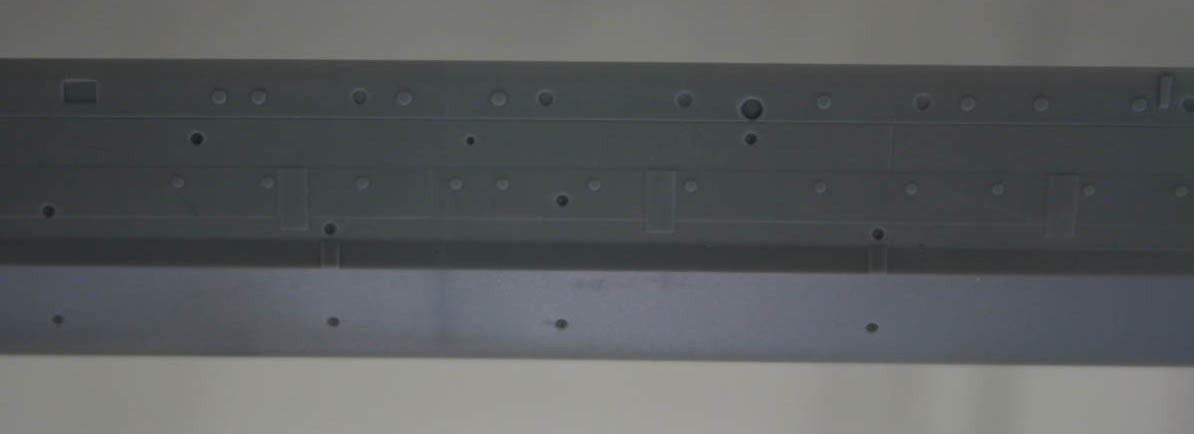 The side pieces appear well done. The kit is meant to portray Yamato on her final mission, when she was sunk trying to reach the US fleet near Okinawa; as such most of the portholes are rendered as plated over. This detail is perhaps a touch overdone, but given the other hull details it was probably necessary to present them this way. There's not a lot to add here other than a hope for a good fit between the other hull pieces.