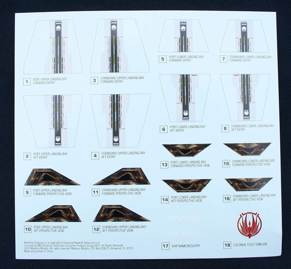 The remaining 3 decals are the Colonial Fleet Emblem and the ship's name and registry number.