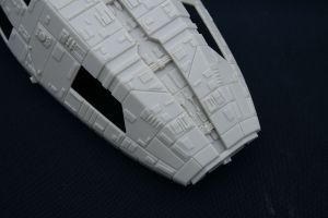 At the time I write this there are three aftermarket sets for this kit, all from ParaGrafix. They make a PE exterior set, a PE hangar bay interior set and decals for alternate ship names.