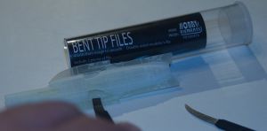 The last set sent in are another set of Bent Tip Files, this time in 4mm width. Like the 1mm width there are two files with each end having different grits from "rough" to "smooth". You can see in the last image how I was able to use the Bent Tipe Files in cleaning up the "dithering" some 3D models have, this time the Triple Nuts 1/144 JF-17 ShapeWays print. The one landing gear well was a bit rough so these files really helped to get into the area and clean it up perfectly. Nice!