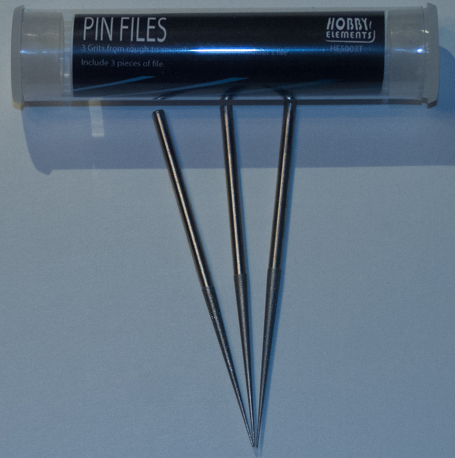 The first release is a set of Pin Files. There are three files in this set, ranging from "rough" to "smooth". In the image you can see just how these round files taper into a really nice point, allowing one to get into the smallest holes to clean up. I can definitely see using these quite often when cleaning up the ends of gun barrels, etc.