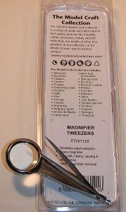 Finally, a suggestion to Model Craft. These are great if you want to quickly place a part you need extra magnification for. However, if you want to use these tweezers to have magnification to actually work on a part, then they're a little awkward in having to keep pressing the tweezers to keep them closed. I think having a pair of "press to open" tweezers with the magnifier would also be a great idea. That way you can keep the part in the tweezers while working on it and not have to worry about putting the part back in the tweezers when you need to reposition.