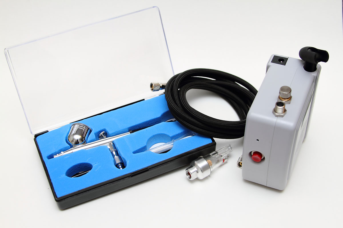 For those wanting to move into airbrushing, the choices out there can be daunting and expensive. It can be easy to spend several hundred dollars in getting an airbrushing system together, and for the novice that can be prohibitively expensive. This new bundle from Model Expo is aimed at those modelers looking to move into airbrushing, but don't want to spend a lot of money. This is a bundled set that combines a double-action airbrush with a mini compressor, along with an air hose and an inline water trap, all for only $89.99. Right out of the box, for less than the price of a large 1/32 model, you can be spraying away.