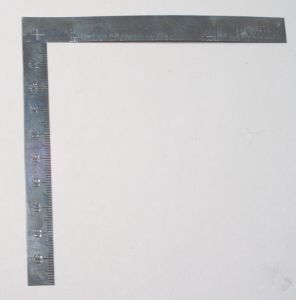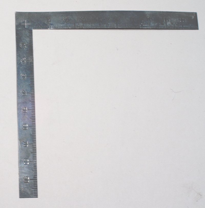 The first tool we have is an L-Shaped ruler. Not only is this marked in millimeters on both legs, but it also is very flexible, being able to adjust to most model surfaces. The biggest advantage to an L-Shaped ruler is being able to get a 90 degree angle, which is good for making squares, rectangles, etc. I can also see this helping when needing to cut out a perfect "angle" out of tape, or some other masking material.