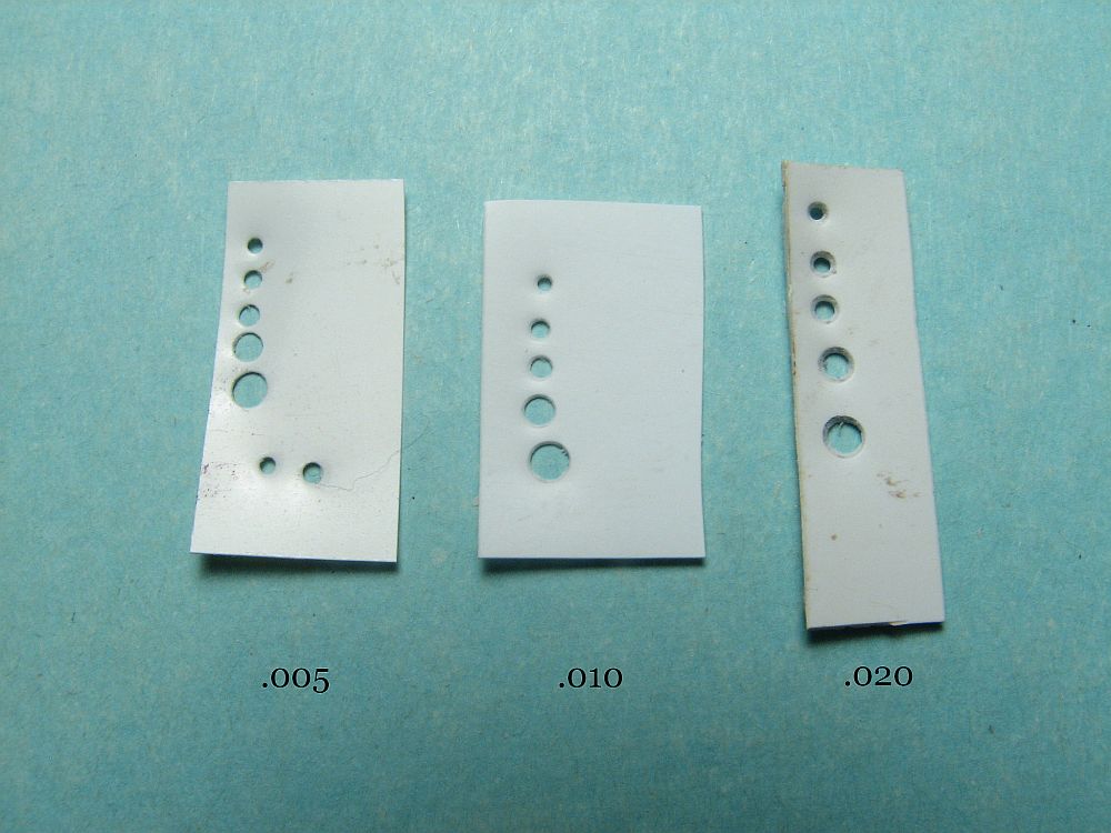 The UMM-USA Plierpunch "round" will help you create consistent holes in whatever you want to make holes in. Especially if those holes need beveled edges. There are five differnet holes, ranging from 0.8 mm (.032") up to 2.0mm (.080"). Unless you build in 1/144, you should find a punch to fit your needs.