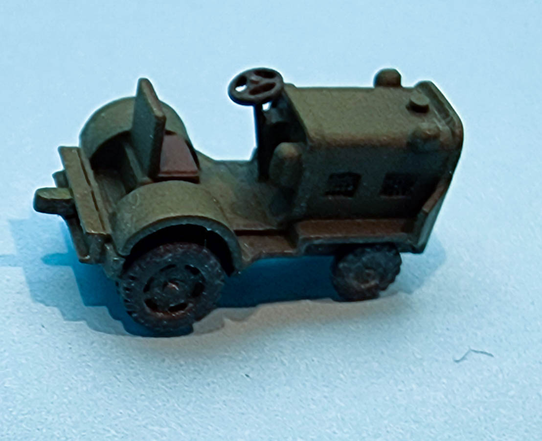 All were primed with Vallejo primers: Olive for the Clarktor and Jeeps, and Gray for the Kübelwagens. I then sprayed one of the Kübelwagens with Vallejo Panzer Yellow and the other Panzer Gray just to have some variety. I used the Brengun decals on both Kübelwagens and one of the Jeeps: while there were decals for both Jeeps, they were for the same vehicle with the same codes and numbers. So, one of the Jeeps just had the star on the hood applied and nothing else. All the decals behaved well and settled down using the MicroScale products.