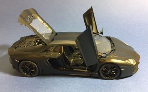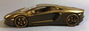 The brakes, wheels and tires have excellent detail. The Aventador has carbon ceramic drilled rotors. You can add more detail to the brakes by using a small drill bit in your pin-vise and drilling out the holes, or by using a toothpick and dab a tiny bit of paint into each hole like I did. Most Aventadors you will see have gloss black wheels, so I painted mine the same. The wheels and tires are poseable.
