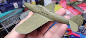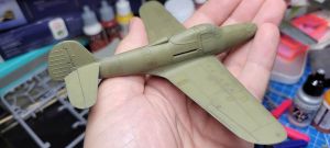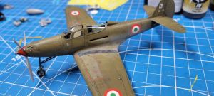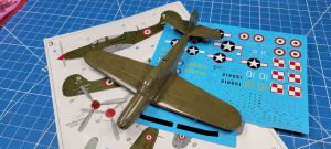 The option I chose to do was the Italian aircraft from the decal sheet, as I didn’t have any Italian subjects in my display case yet. As these were ex-US aircraft, they were far from factory fresh, so I went with multiple layers of different tones of olive drab to highlight that fact. I lost count, but I think I ended up using about five different shades on this paint job, with some painted on specific panels and others just randomly painted over for an overall faded effect. I was pretty pleased with the outcome, and a gloss coat prepped it for decals.