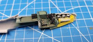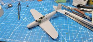 Moving on to the required modifications for this kit, Arma has clearly planned on releasing multiple versions of this P-39 kit and so there are going to be minor changes in terms of panels to fill, holes to open up, etc. The wings get a fair bit of these changes, with the four gun openings needing to be filled. I opted to glue the gun pieces in place as use those as plugs, minimizing the amount of filler needed on those. I also opened up the holes for the underwing gondolas and centerline drop tank. Another thing that I filled in was the square panel on the left upper wing near the trailing edge root. This is scribed on both sides of the kit, but is only present on the right side. Similarly, the elevator trim tab is only present on the left side, not both, so that was another spot to fill in. The instructions also indicate a few other panels to fill in, but they missed some others. Given the vast number of variants that the P-39 went through I’m not surprised, and for those who want to have every single panel exactly right, there are lists out there that highlight those. Me, I’ll go for a close enough look and get this one buttoned up & ready for paint.