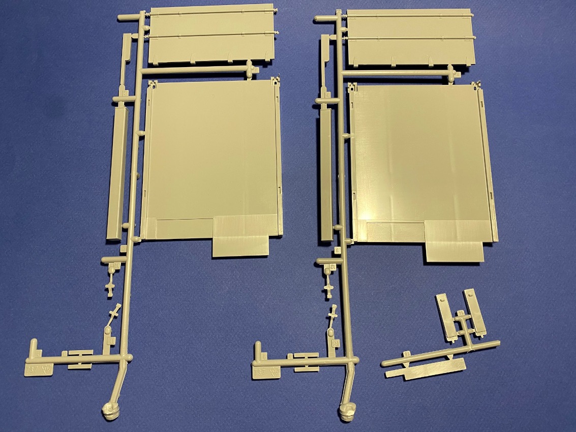 When opening the box, the parts are substantial. We are so used to smaller parts on 1/24 model car kits that when you see the parts sprues they almost look too big. There are 2 big sprues for this kit and they are so big that Italeri used a method that I had not seen before. The 2 big sprues are twice the size of the box and while the plastic was still warm after the injection mold process, they folded the sprues in half. This allows them to fit in the box. So, the main stem had to be broken so that the sprues would separate and parts can be cut from them.