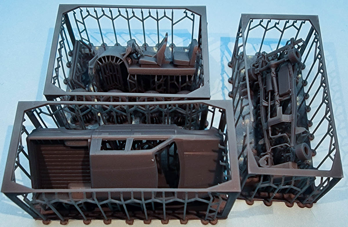 The Military Scales 1/72Â Pickup Toyota Hilux consists of eight pieces of 3D printed resin: the one-piece main body; the one-piece chassis; a one piece interior; the roll bar for the back of the truck's bed; and four wheels. There are no instructions included but it truly isn't needed.