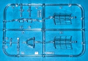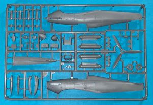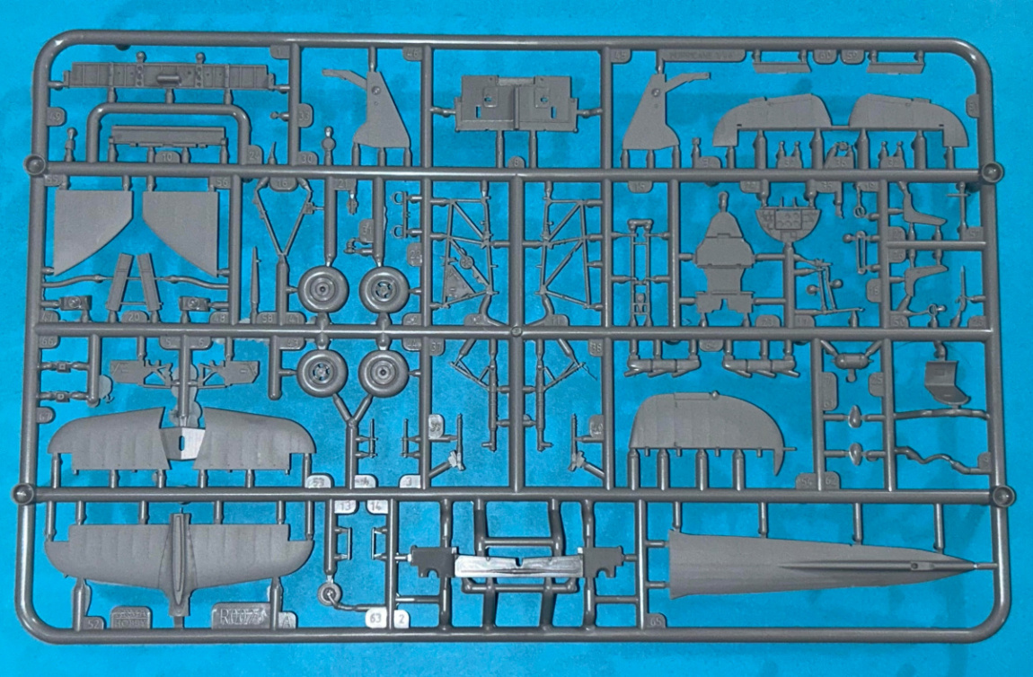 The kit comes in a sturdy open ending box with a separate inner tray containing the parts, and an evocative painting of a Mk.IIb flying through a cloudy sky. It consists of 133 injection molded parts molded in gray and clear on 4 sprues. The parts are free of flash and sprue attachment points are well located so it will be easy to remove the parts from the sprues without damage.