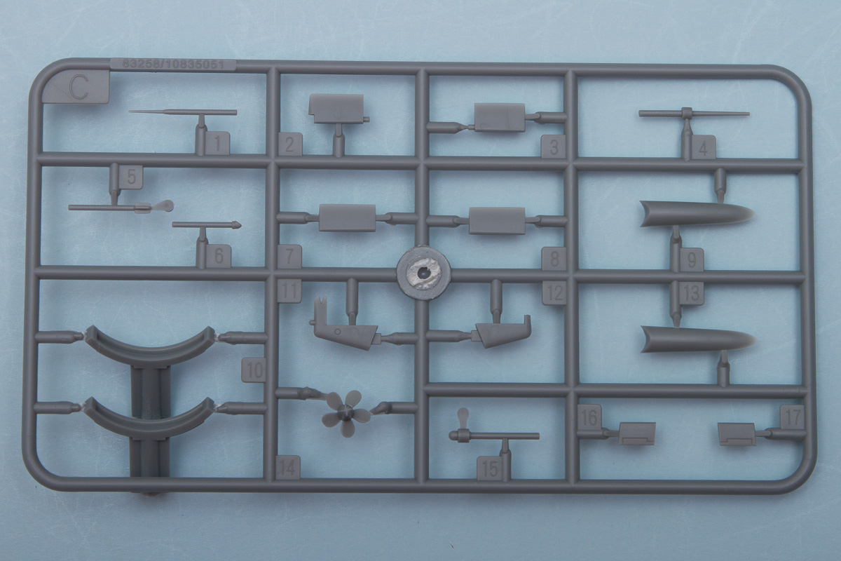 The photoetch details offer some extra details and an option for replacing a plastic part. For those wanting a more detailed screw, there is a photoetch blade set that replaces the plastic ones. The rest of the photoetch details involve the sail. There are photoetch vents for the sides, and a photoetch windscreen, albeit with solid windows. The rest of the photoetch covers the various antenna hatches. There's optional pieces provided for you to have the various hatches open or closed. By mixing and matching the various antennae, you can have a unique arrangement for your Alfa submarine.